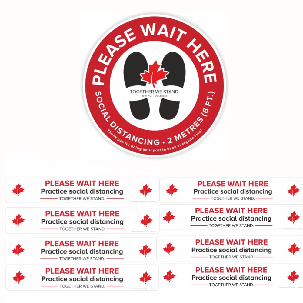 They come in packs of 5 peel and stick decals and are available in English and French. Stand Here Maintain Social Distance 6 Feet Floor Sign. Our SlipSafe Anti-Skid Vinyl Floor Signs Stickers come with pebbled finish that helps prevent slips and skids.